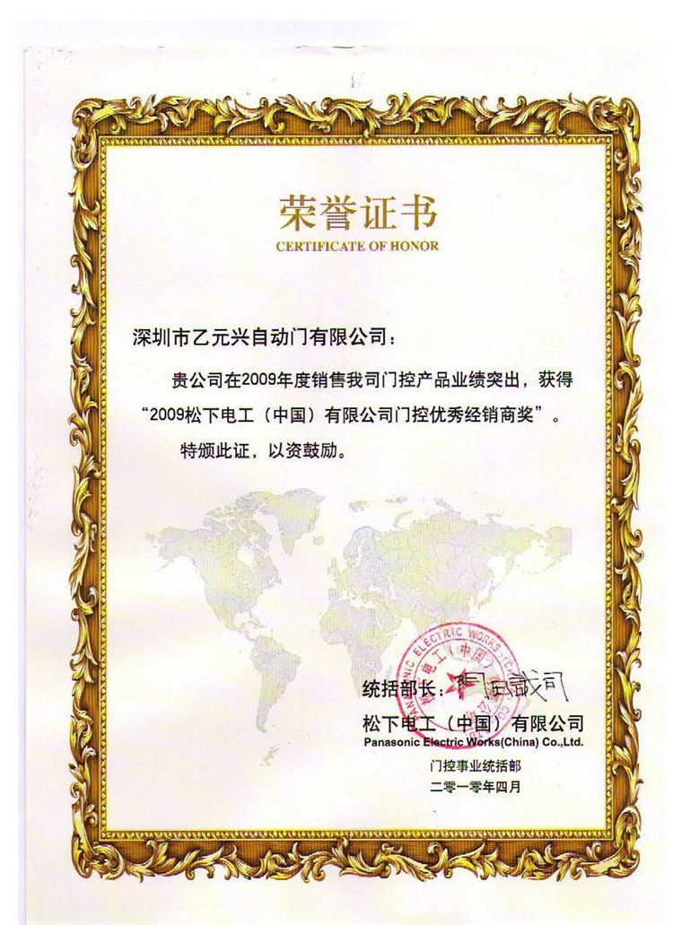 • 松下技術(shù)服務優(yōu)秀榮譽證書